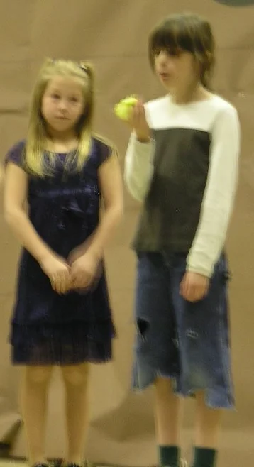 And, no, I'm not the cute blonde girl with the pig tails. I'm the one eating the apple.